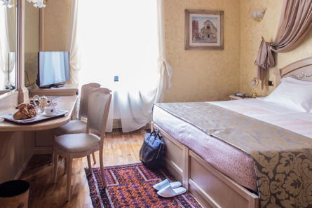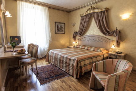 Das Colomba d’Oro **** empfängt Sie in einem Renaissance-Gebäude im historischen Zentrum von Verona, nur 150 Meter von der Arena entfernt. Bereits seit 1837 ein Hotel, bieten Ihnen die Zimmer, die sich alle voneinander unterscheiden, eine warme Atmosphäre, elegante, teils handgefertigte Details und Originalwerke lokaler Künstler und Handwerker. Nach einem erkundungsreichen Tag lädt der Innenhof als ruhiger Ort der Entspannung auf ein Glas Valpolicella oder Spritz ein. Reihen Sie sich ein in die lange Liste der Künstler, Schriftsteller und Filmstars, die dieses Haus als Domizil auf Zeit in Verona gewählt haben.